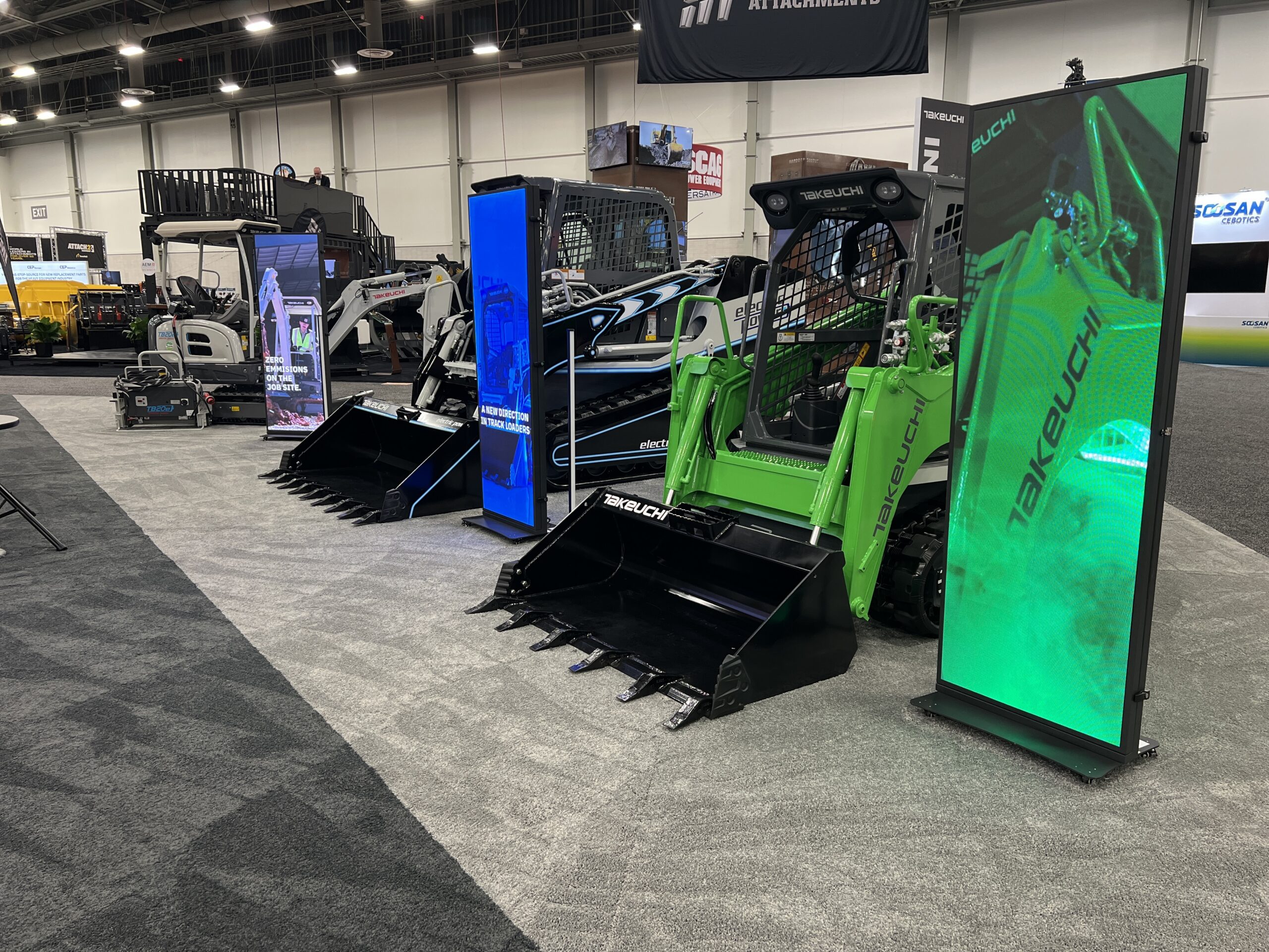 Before the crowds, before the lights, before the first handshake—there’s the work. We worked hard inside the Las Vegas Convention Center’s West Hall, turning an empty space into the largest Takeuchi booth we’ve ever had in the US. Seven tractor trailer loads made the journey from Pendergrass, Georgia to Las Vegas, carrying 19 machines, booth structures, signage and everything in between.